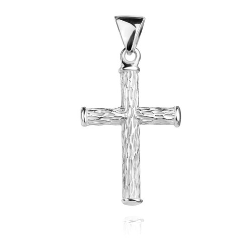 Cross Pendant Sterling Silver 925 Wood Textured Religious Unisex Jewelry