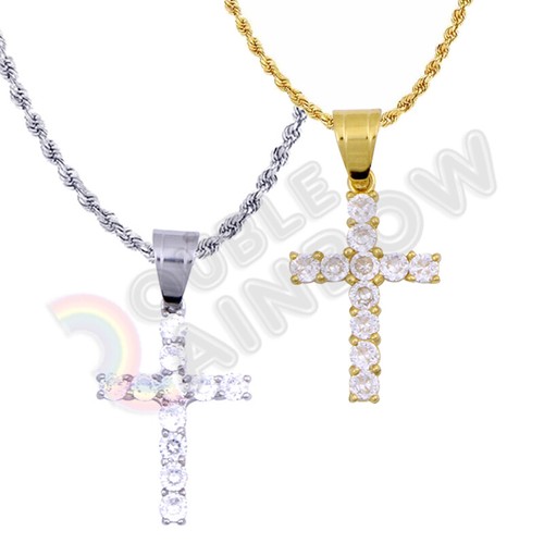 Crystal Cross Stainless Steel Micro Paved Cubic Pendant Necklace Chain*P231