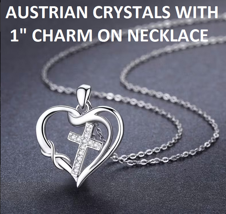 CZ HEART RELIGIOUS CROSS Pendant 24″ Plated 925 Sterling Silver Necklace Women