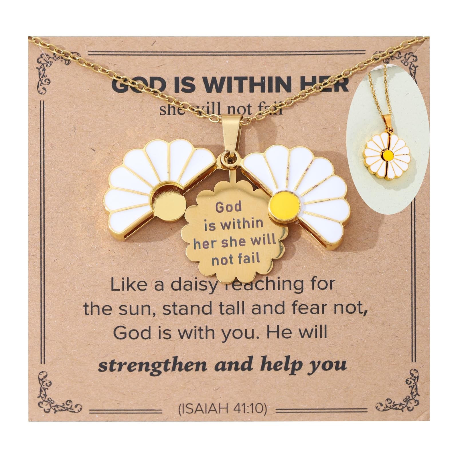 Daisy Bible Verse Faith Necklace Christian Jewelry for Women Teens, Openable …