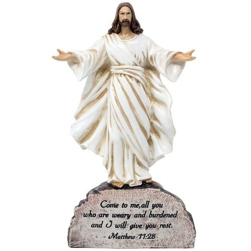 Decorative Jesus Standing on Rock Statue with Inspirational Bible Verse for C…