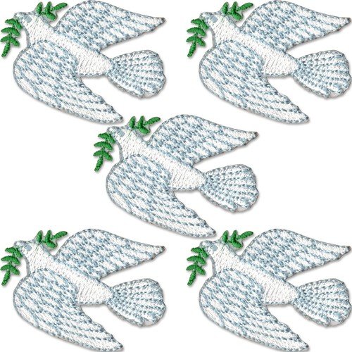 Dove of Peace Patches (5 Pack) Religious Embroidered Iron On Patch Applique