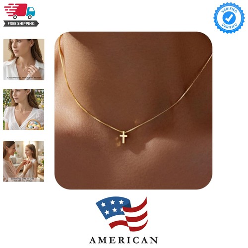 Easter Basket Stuffer Cross Necklace for Women Girls, Dainty 14K Gold Silver …