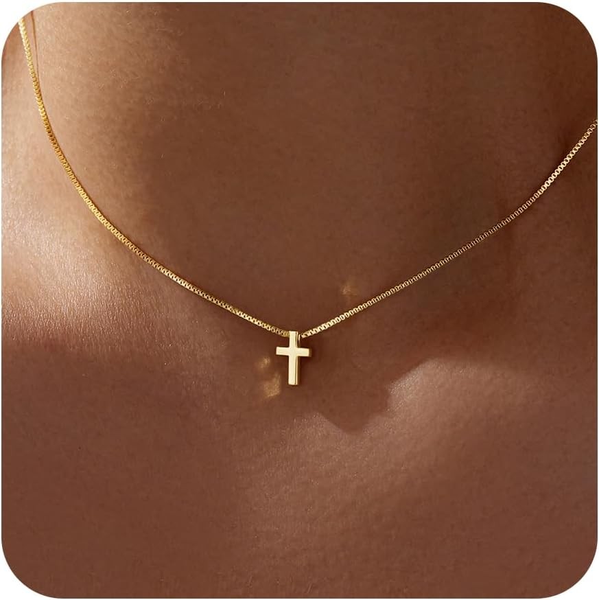Easter Basket Stuffer Cross Necklace for Women Girls, Dainty 14K Gold Silver Pla