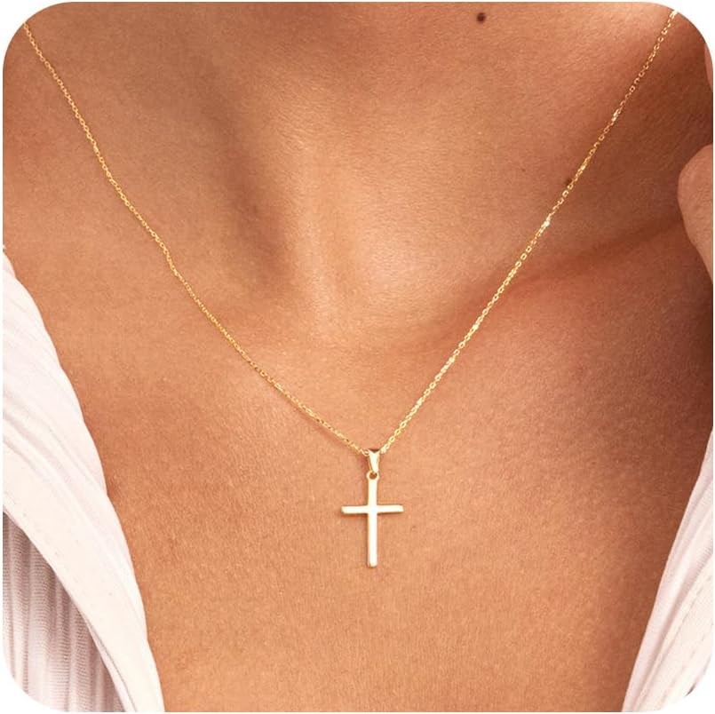 Easter Basket Stuffers – Cross Necklace for Women 18K Gold Plated Cross Necklace