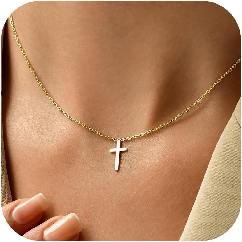 Easter Basket Stuffers – Cross Necklace for Women 18K Gold Plated Cross Necklace