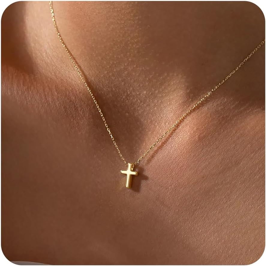 Easter Basket Stuffers Small Dainty Cross Necklace for Women,Sideway 14K Gold Pl