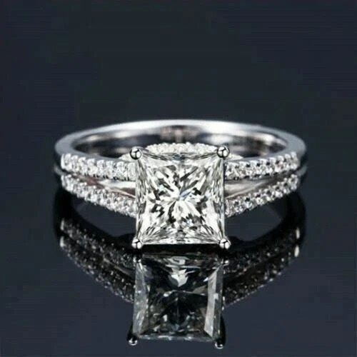 Engagement Ring 14K White Gold 2.00Ct Princess Cut White Moissanite