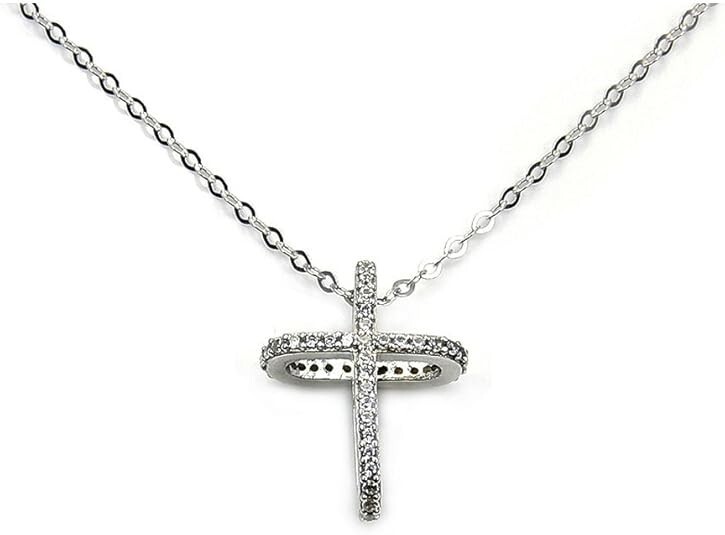 Faith, Hope, Love’ Sparkling Cross Necklace 925 Sterling Silver Gift