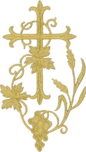 Fleur Cross W/Grapevine-Vestment-Embroidered Gold Metallic Iron On Applique 6″H