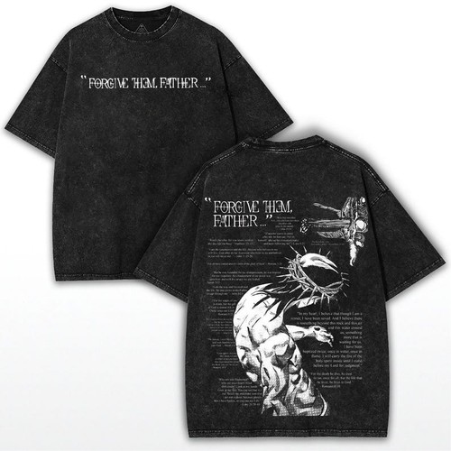 Forgive Them Father Tee – Gothic Cross Graphic Christian Faith Vintage Shirt