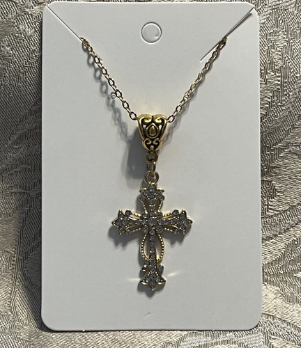 Gold Cubic Zirconia Cross Shape Necklace Pendant Fashion Boho Trendy Jewelry
