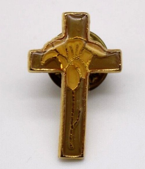 Gold-Tone Cross Lapel Pin With Embossing Religious Accessory 1″ X .75″