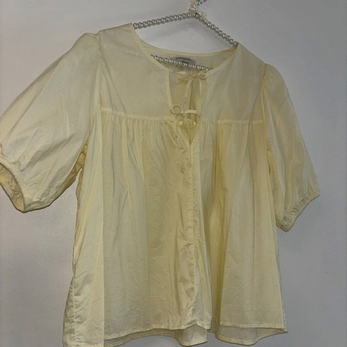 Habitual Butter Yellow Shirt Sz Lg Blouse Bows Coquette Fairy Glam Classy Top
