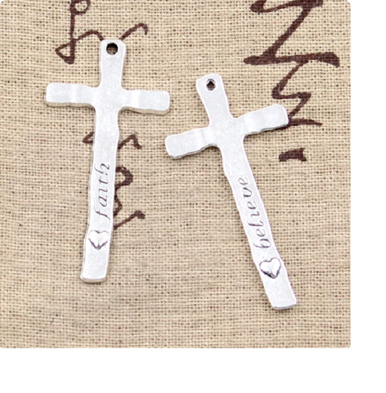 HAMMERED 2 SIDED CROSS BELIEVE FAITH Pendant On 24″ 925 Sterling Silver Necklace