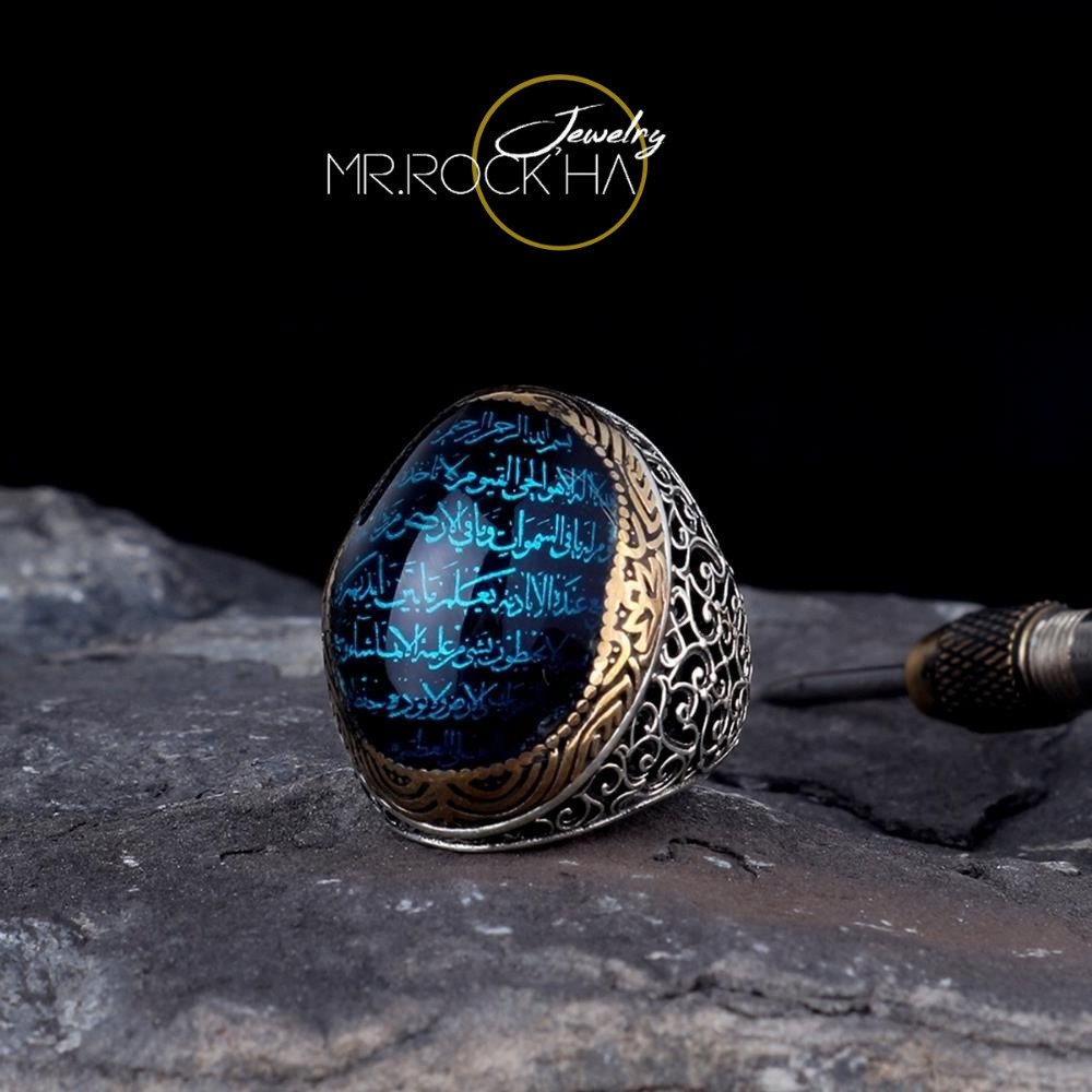 Handcarved,Ayet El Kursi,Quran Verse Written,Handmade,925 K Silver Men’s Ring