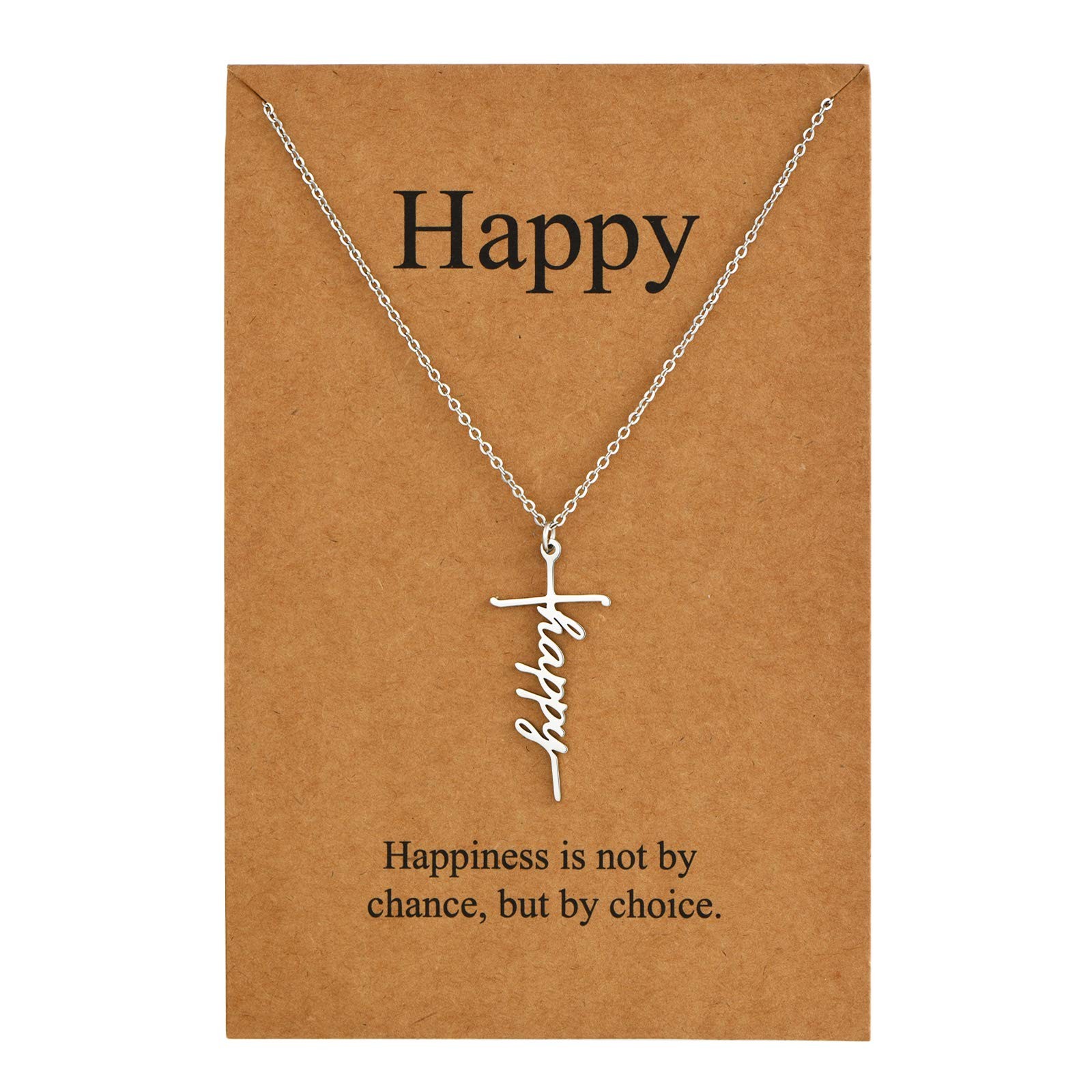 Happy Cross Pendant Necklace Stainless Steel Religious Jewelry for Women