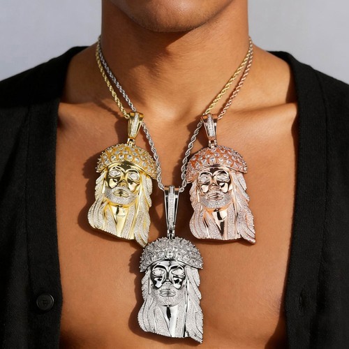 Hip Hop Jesus Pendant Necklace Full 5A Zircon Gold Plated Religious Mens Jewelry