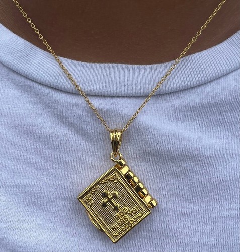 Holy Bible Book Pendant Necklace – Religious Prayer Christian Scripture