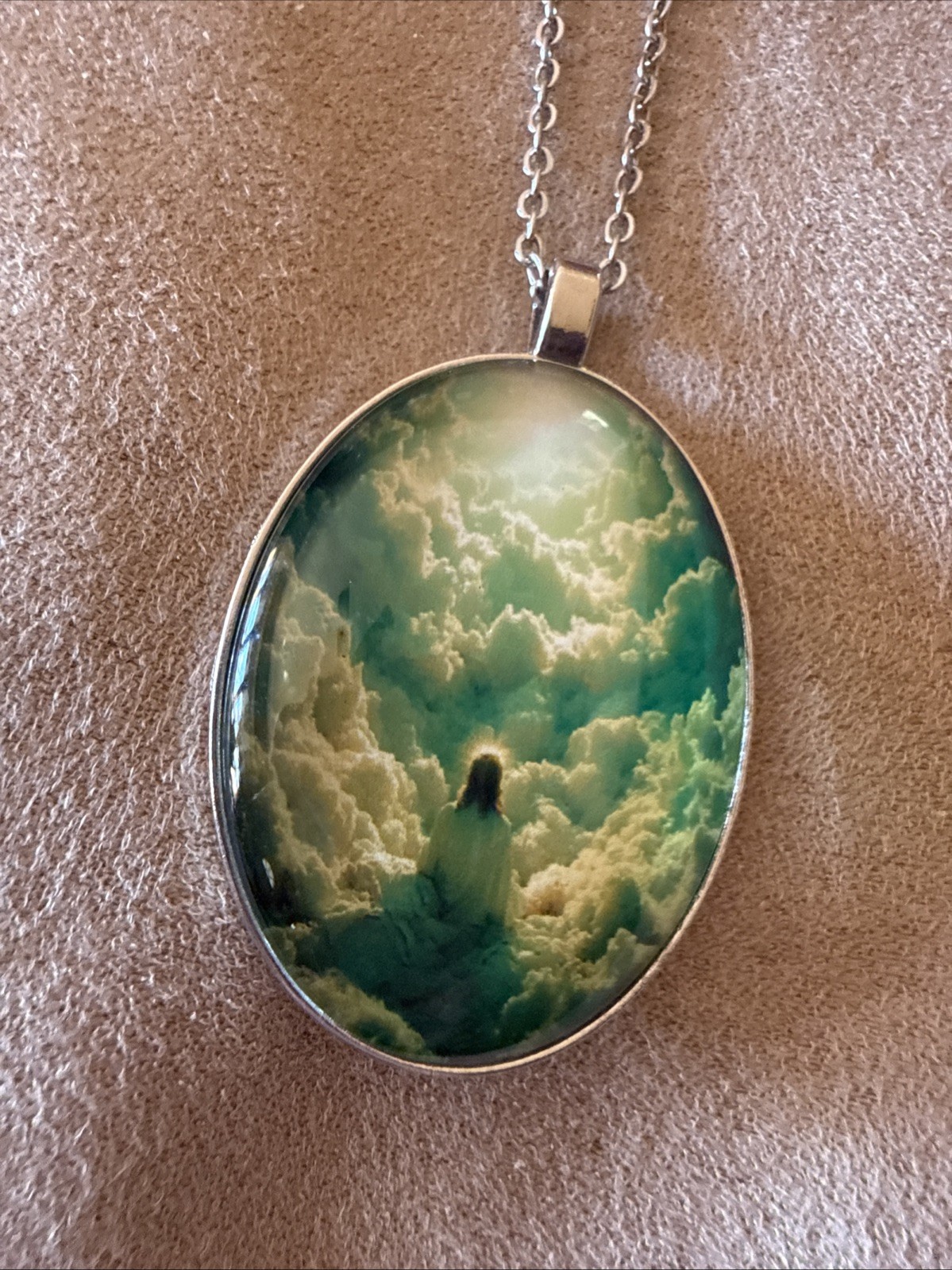 Jesus Christ In The Sky Among The Clouds Oval Pendant Necklace
