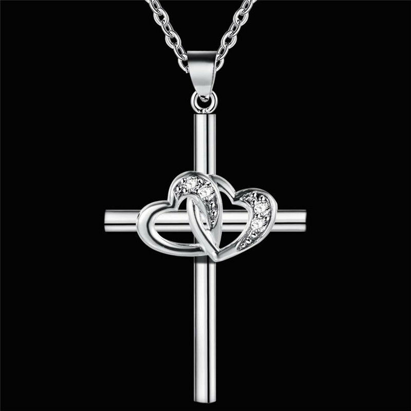 JESUS CRUCIFIX HEART CROSS pendant 22″ Sterling Silver 925 necklace female men