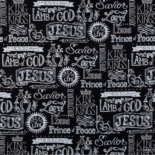 Jesus King of Kings Christian Fabric Black White Religious Bible Prayer Cotton