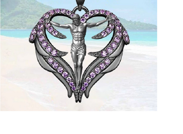 JESUS RELIGIOUS PURPLE WINGS Pendant 925 Sterling Silver 18″ Necklace Men Women