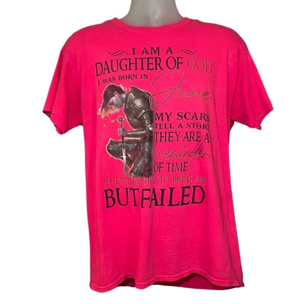 June Girl I am a Daughter of God Stronger Than You Believe Graphic Tee Large
