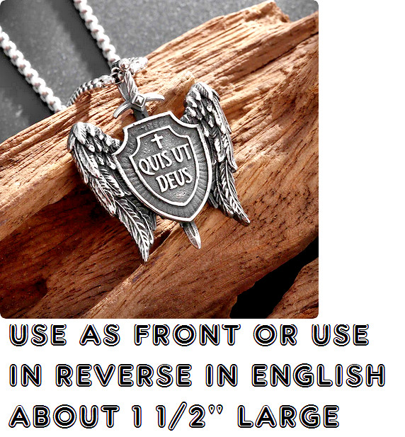 Large 2 Sided ST MICHAEL Quis Ut Deus Charm On 20″ 925 Sterling Silver Necklace