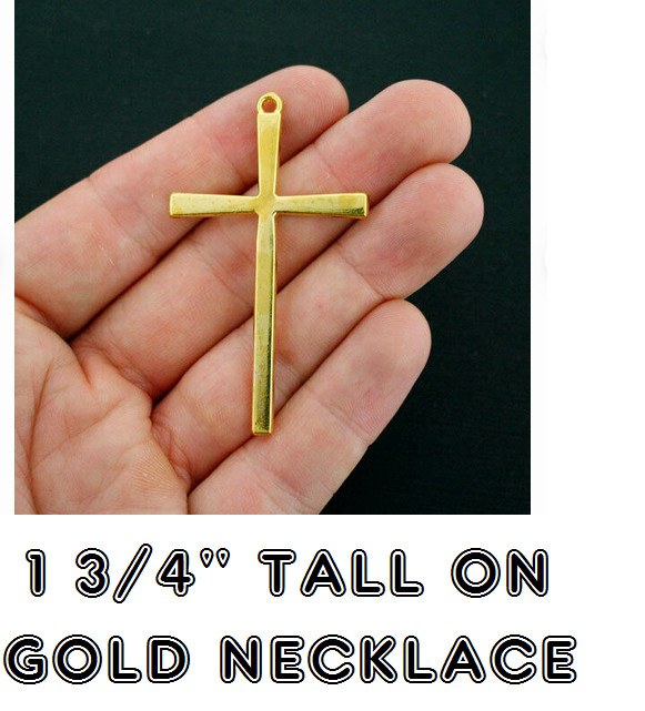 Large CROSS CHRISTIAN RELIGIOUS Pendant On 18″ GOLD Plate 18K necklace women men