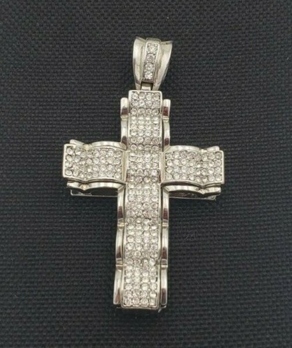 Large Jewelry Cross Pendant Silver tone with Rhinestones
