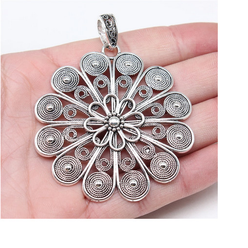 large MANDALA FILIGREE FLOWER OHM LOTUS Pendant 925 Sterling Silver 22 Necklace