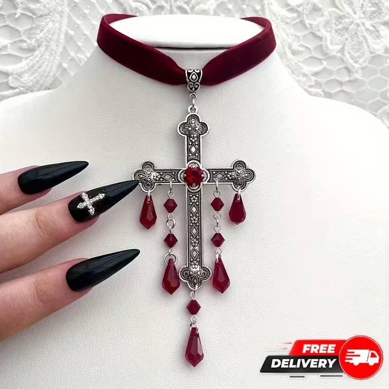 Large Red Cross Velvet Choker Gothic Goth Women Necklace Jewelry