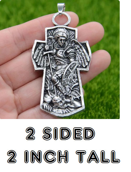 Large ST MICHAEL PROTECTION ANGEL FAITH pendant 20″ 925 Sterling Silver Necklace