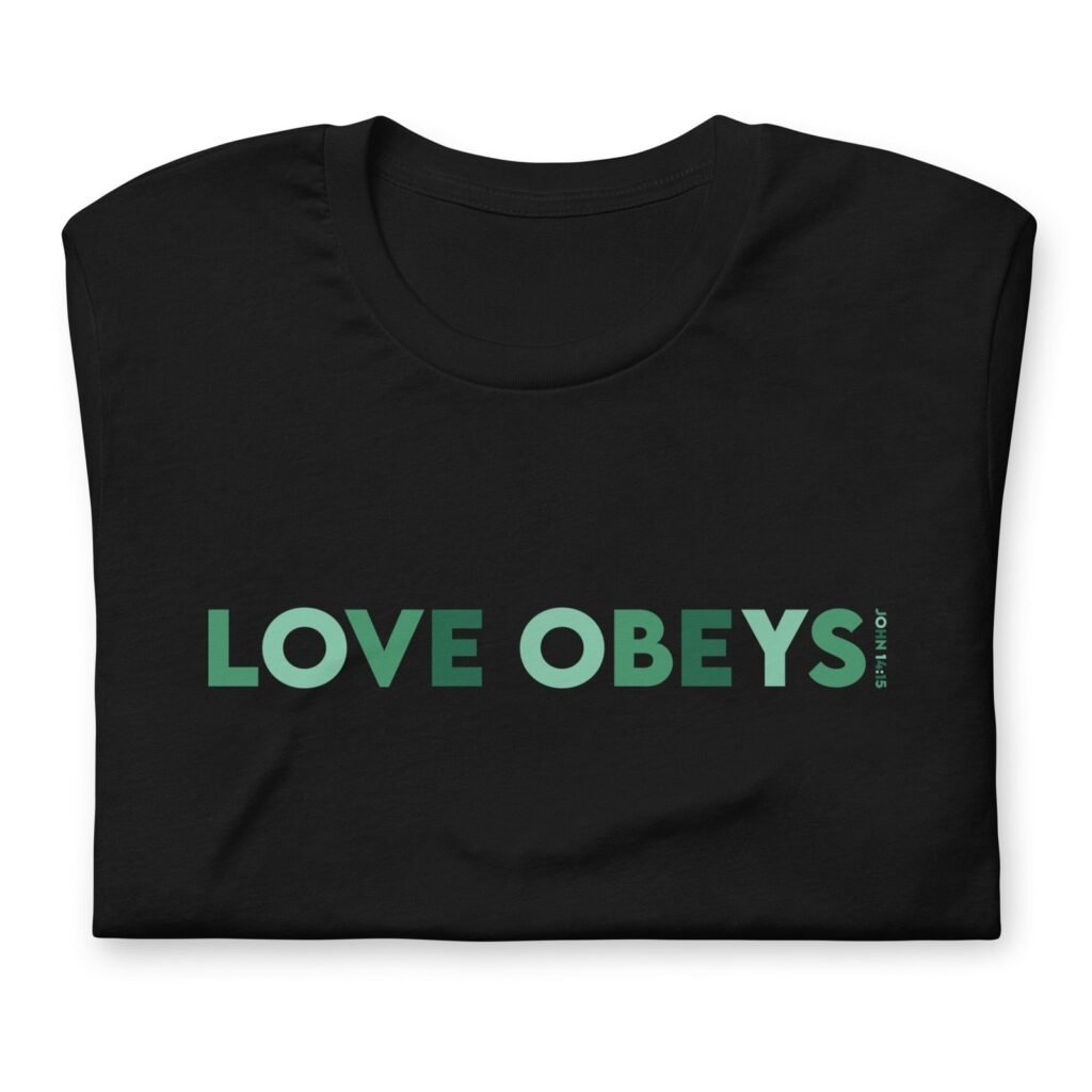 Love Obeys Jesus John 14:15 T-Shirt (Green/Black) | Christian Apparel