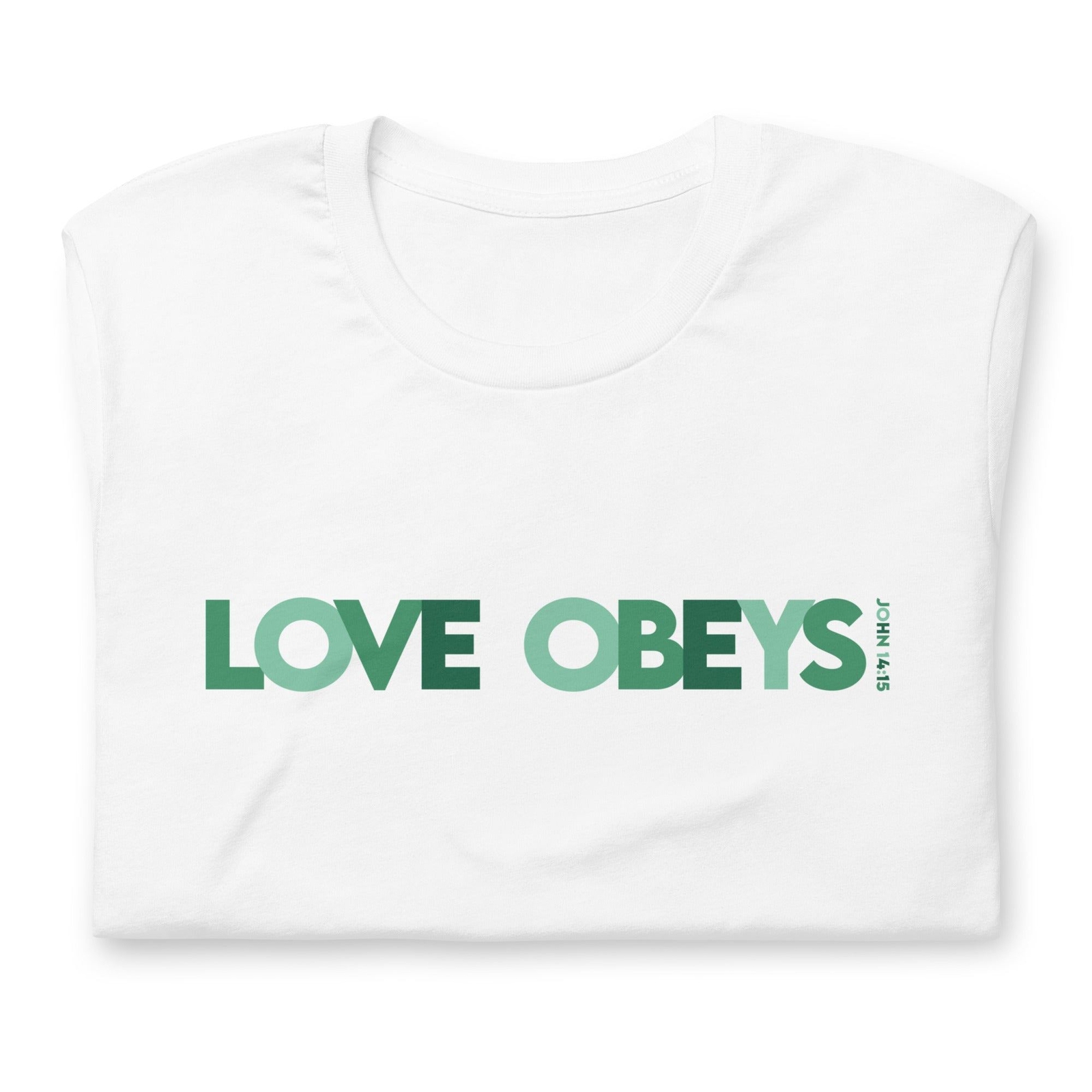Love Obeys John 14:15 T-Shirt (Green/White) | Christian Apparel