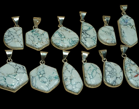 Lovely Howlite Gemstone 925 Sterling Silver Plated Wholesale Bezel Pendant Lot