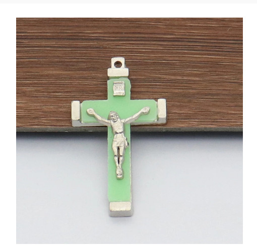 LUMINOUS GLOW CROSS JESUS PRAY pendant 24″ 925 Sterling Silver plated Necklace