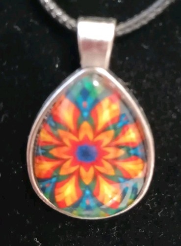 Mandala, Kaleidoscope Pendant Necklace 25mm Glass Cabochon,