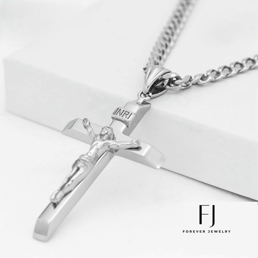 Men 20″ Stainless-Steel.JESUS CROSS 62mm Pendant Cuban Chain High Polish Box