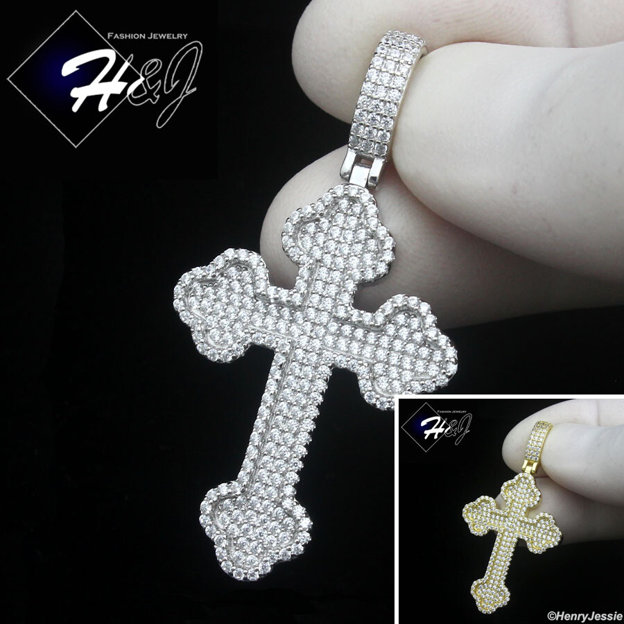 MEN 925 STERLING SILVER ICY BLING CZ GOLD PLATED/SILVER 3D CROSS PENDANT*SP486