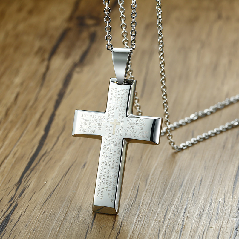 Men Women Lords Prayer Christian Bible Cross Pendant Necklace Crucifix Jewelry