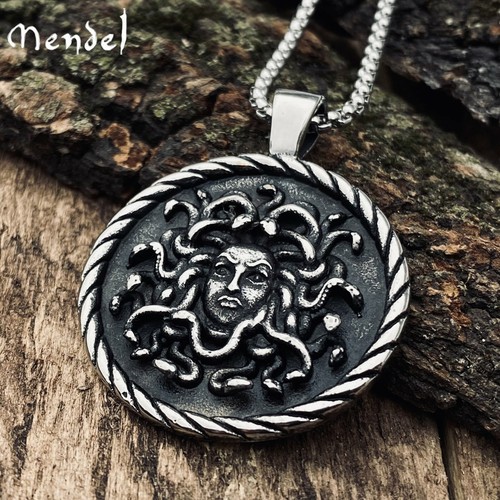 MENDEL Mens Womens Stainless Steel Greek Snake Medusa Head Pendant Necklace Men