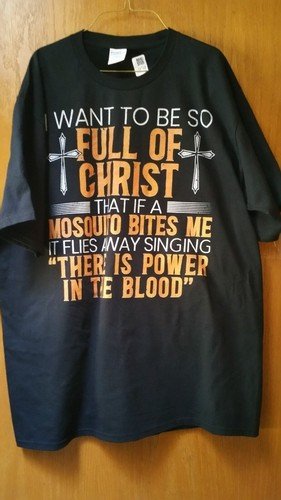 Men’s Novelty T Shirt -“Full of Christ that if Mosquito Bites Me…” Size XL