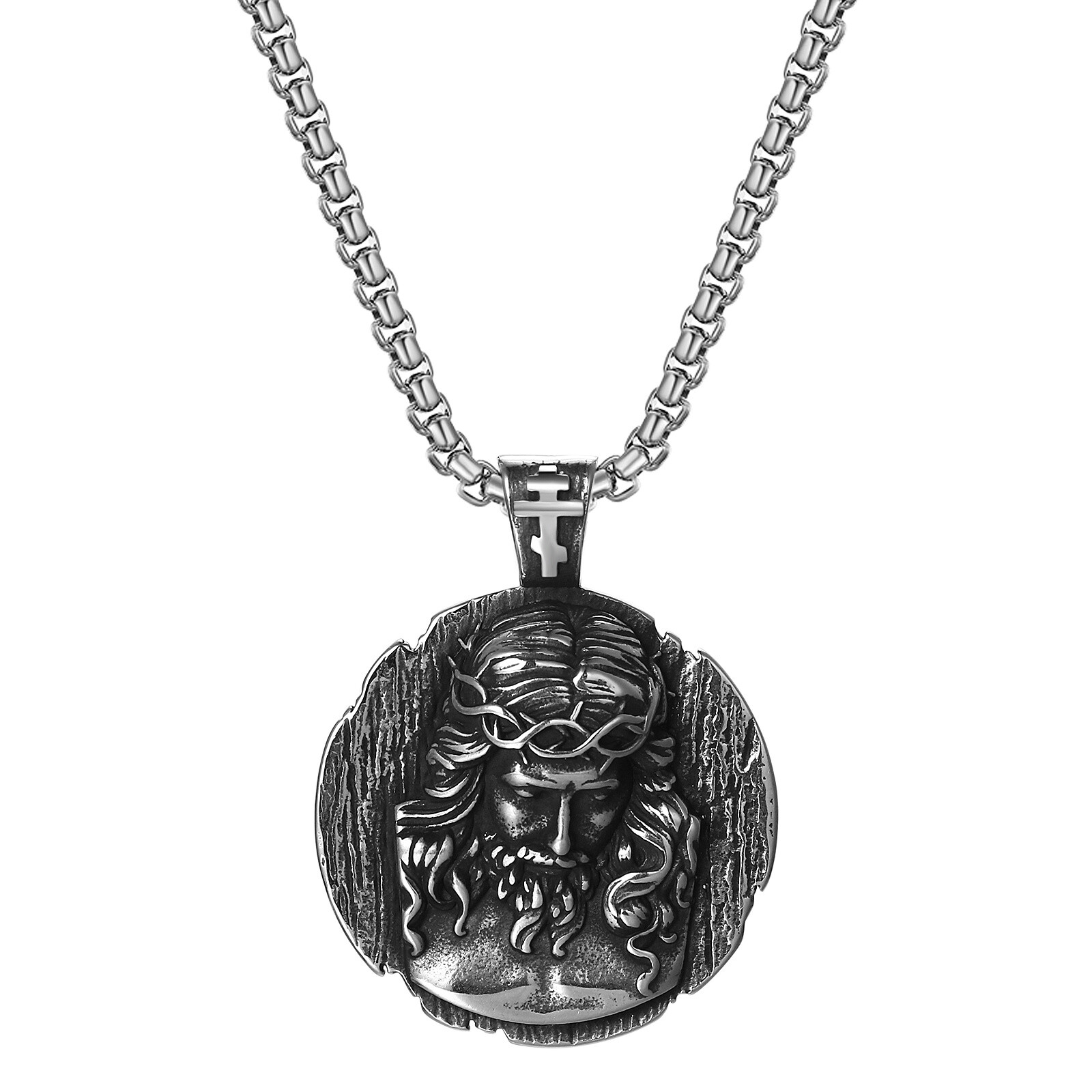 Mens Saint Benedict Medal Stainless Steel Christian Jesus Pendant Necklace 22in