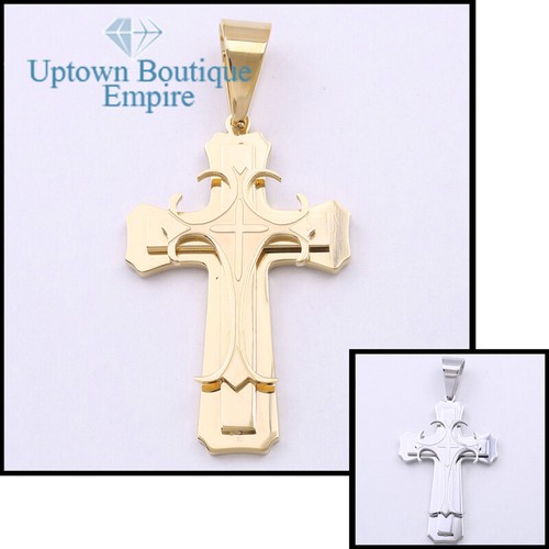 Men’s Stainless Steel Gold Silver Black Plated Heavy Cross Pendant*AC