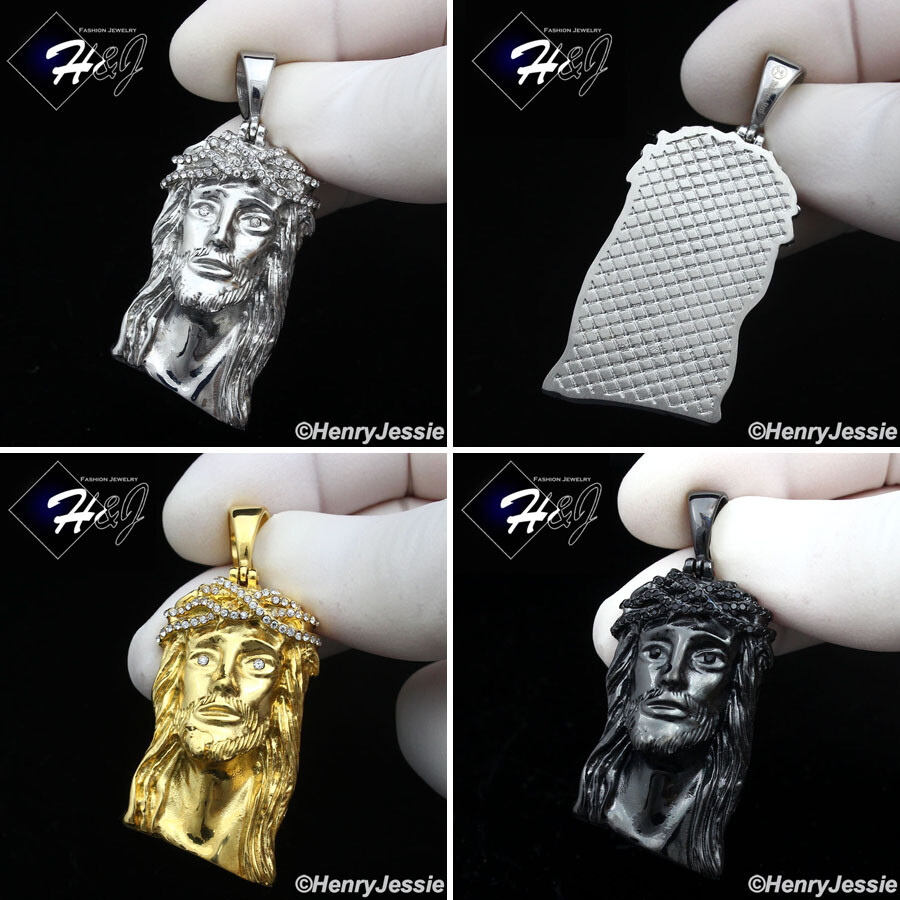 MEN’s Stainless Steel ICY Bling CZ 3D Gold/Black Plated JESUS Face Pendant*P133