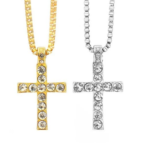 Mens Womens Silver Gold CZ Cross Pendant Necklace Christian Religious Jewelry
