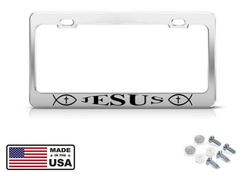 Metal License Plate Frame Jesus Fish Christian Religious Car Accessories Chrome