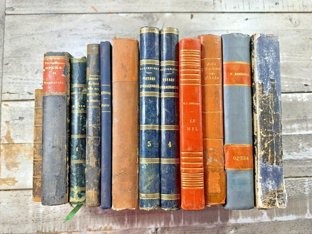 Mid 1800’s Antique Religious Books, Lot of 12, Decorative Bindings, Non-English